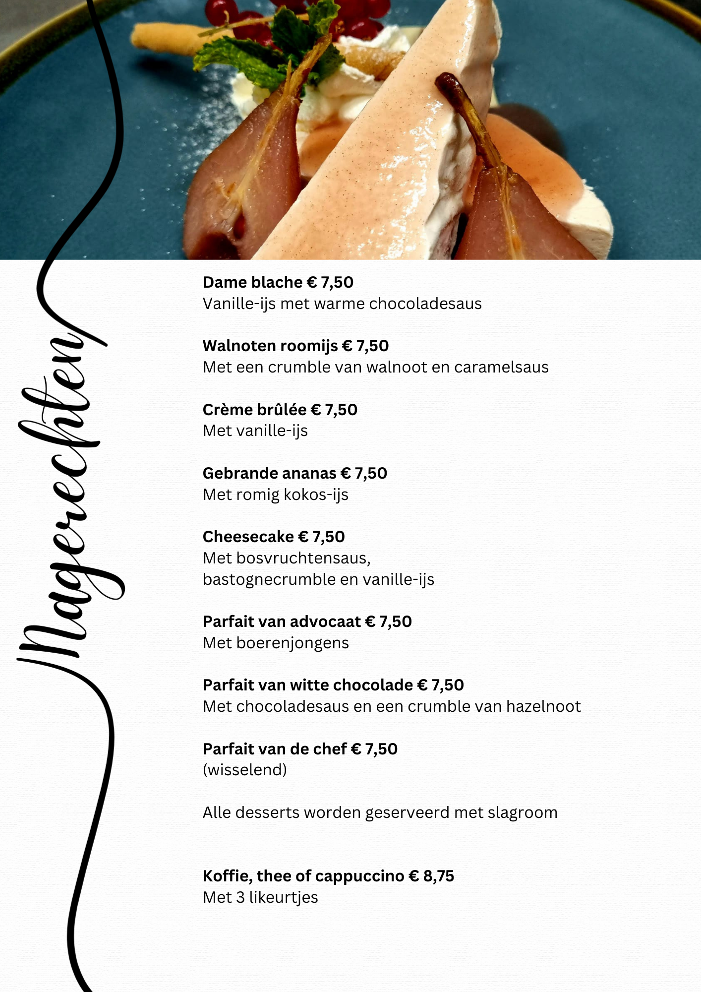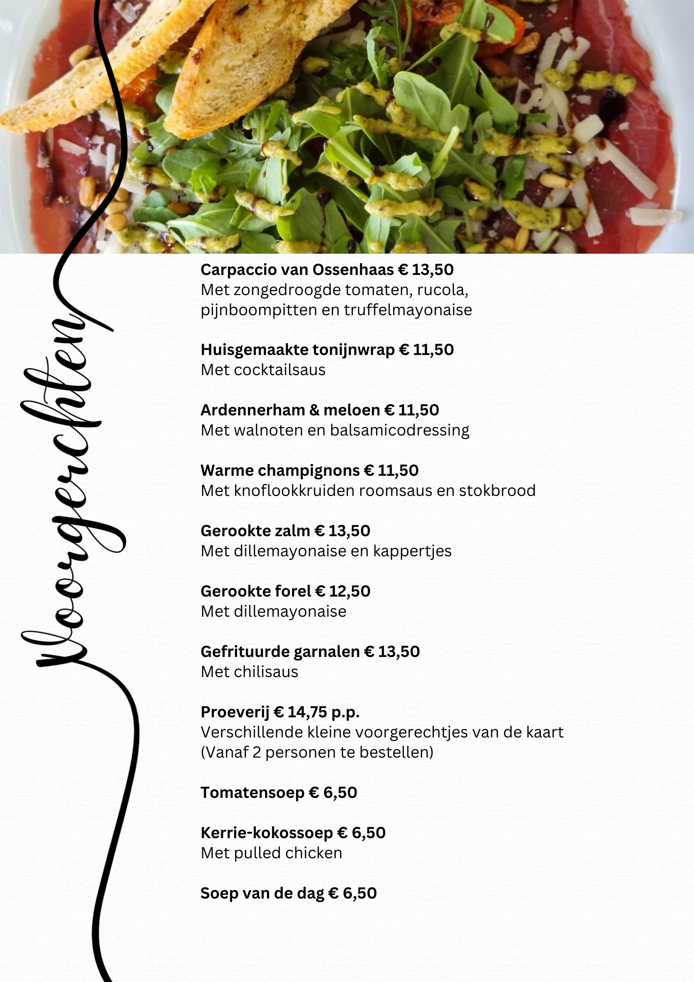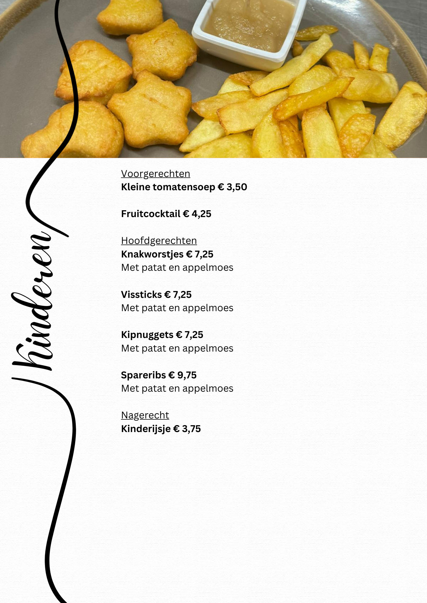 Keuken geopendWoensdag t/m vrijdag 16.00 tot 21.00Zaterdag 16.30 tot 21.00Zondag 12.00 tot 21.00